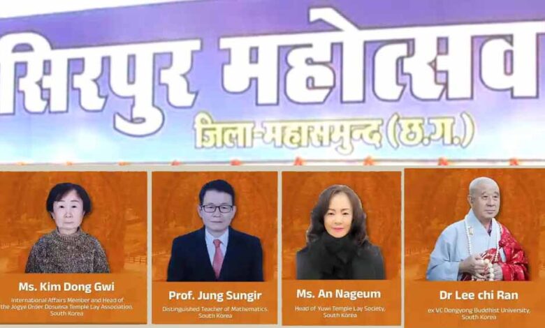महोत्सव में दक्षिण कोरिया से इतिहास, कला और संस्कृति के विशेषज्ञ आमंत्रित किए गए हैं। महासमुंद कलेक्टर विनय कुमार लंगेह ने जानकारी देते हुए बताया कि, इनमें दक्षिण कोरिया के प्रो. जंग संगीर, किम डांग ग्वी, डॉ. ली ची रैन और एन नाजियम प्रमुख रूप से शामिल हैं, जिनकी सहभागिता से सिरपुर की अंतर्राष्ट्रीय पहचान और सशक्त होगी।
