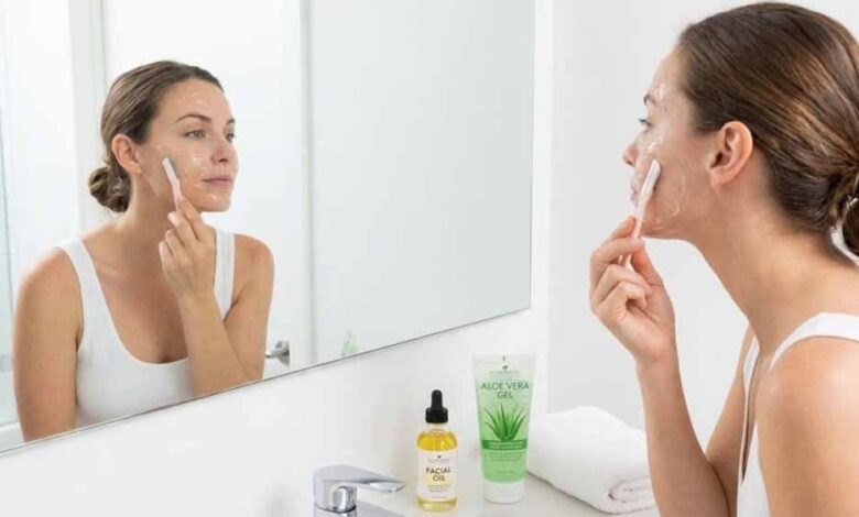 एक अच्छे हाइड्रेटिंग मॉइस्चराइजर या एलोवेरा जेल से चेहरे को अच्छी तरह हाइड्रेट करें।