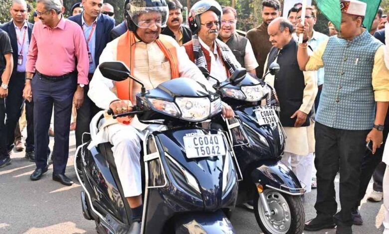 मुख्यमंत्री साय ने सड़क सुरक्षा का संदेश देते हुए स्वयं हेलमेट पहनकर बाइक चालकों के दल के साथ स्कूटी चलाई।कार्यक्रम में मुख्यमंत्री साय ने राजधानी रायपुर के पंडरी में आधुनिक लाइसेंस सेंटर कार्यालय भवन पंडरी का भूमिपूजन और प्रदेश भर में मुख्यमंत्री ग्रामीण बस योजना के तहत 12 नवीन मार्गों में 12 नवीन बसों का शुभारंभ किया।