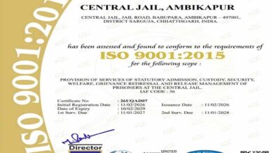 छत्तीसगढ़ की 4 सेंट्रल जेलों को मिला आईएसओ गुणवत्ता प्रमाणन